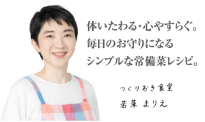若菜まりえさんは、時短料理家として活動する料理研究家です。自身のブログ「つくりおき食堂」では、電子レンジ調理、作り置きレシピ、材料の少ない簡単料理など、現代の生活に寄り添ったレシピを多数紹介しています。