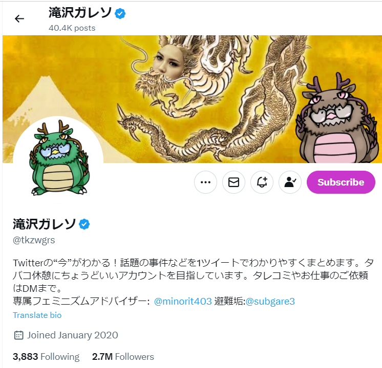 この騒動で、SNSで暴露した「滝沢ガレソ」とは、いったい何者なのか?と注目を集めています。